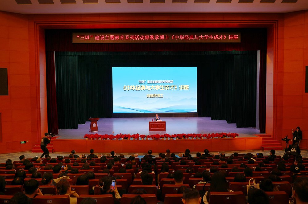 郭继承博士引经据典,从大学生如何成长成才,作社会真正需要的学问,以及大学生成才的共性因素等方面进行了深刻的阐释。他指出,所有的教育核心就是聚焦学生如何真正成人成才,真正的学问是中国经济社会发展所需、人民福祉所需的学问。他强调,人的一生要有两种能力,一个是工具能力,另一个是驾驭工具的能力。驾驭工具的能力,决定了能否行稳致远,决定了能否经得起种种考验、种种诱惑,成就自己的人生。地基坚实牢固,才能承载矗立的高楼;根深漫溢,才能枝繁叶茂;厚德仁爱,才能成为大才。他激励广大学生要找到最适合的路,学安身立命的真本事,德才兼备,全面发展,写好人生传记,创造自己的精彩华章。讲座主题鲜明、深入浅出、内涵深刻,是一场充满人生智慧的“文化大餐”,也是一堂立德树人的精品课,让广大师生深受教育和启发。大家纷纷表示,对未来努力的方向、目标更加清晰和明确,作为新时代青年,今后会从自身做起,刻苦学习、立志成才、报效祖国;作为教育工作者,将坚定不移地落实立德树人根本任务,努力培养堪当民族复兴大任的时代新人。