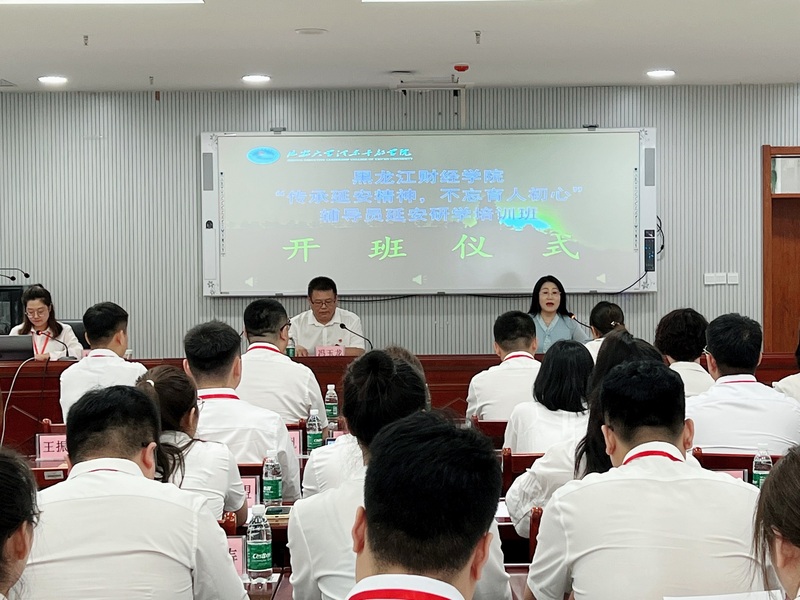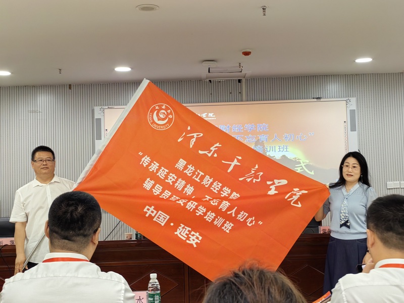 黑龙江财经学院“传承延安精神,不忘育人初心”辅导员延安研学培训班开班仪式在延安大学泽东干部学院举行。党委学生工作部部长、领队冯玉龙出席仪式并讲话,他表示本次延安之行是逐梦之行,是初心和使命的履践之行;希望全体学员珍惜研学机会,能够学以致用。延安大学石油学院党委书记常佩艳致辞,并为研学班授旗。