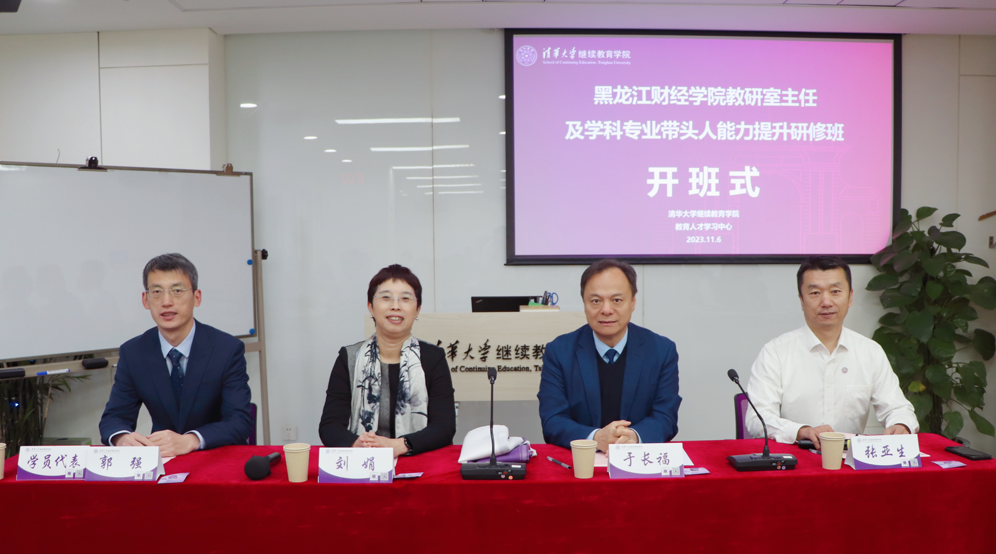 11月6日,黑龙江财经学院教研室主任及学科专业带头人能力提升研修班(清华大学)开班仪式在清华大学继续教育学院顺利举行。我校校长于长福、清华大学继续教育学院教育人才学习中心主任刘娟及参训学员38人参加了此次开班仪式。