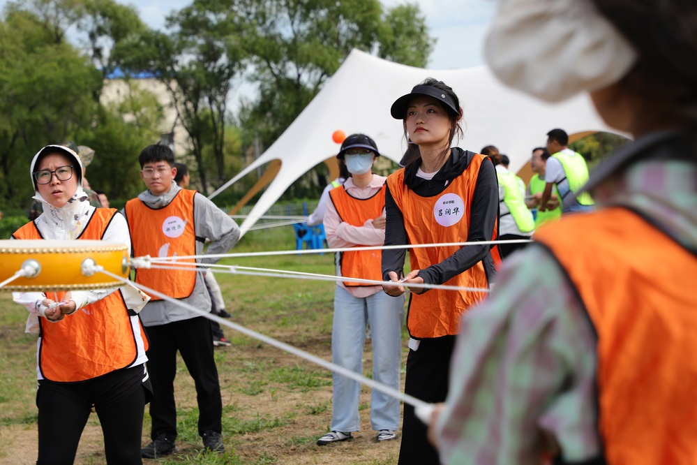 拓展活动采取“破冰分组”的方式将参训学员随机分为四队,分别确定了队长、秘书、安全员、宣传员。队员们在队长的带领下,群策群力起队名、画队旗、唱队歌、喊口号,气拔山河队阳光、人民当家作主队帅气、一路绿灯队青春、归队霸气,各队都摆出姿势合影,留下了美好的纪念,充分展现了龙财新教师的协作能力和青春风采。接下来,各队在“红黑双解码”“防化兵行动”“激情节拍”“共同进退”“大河之舞”“同心鼓”等活动项目中展开了智力与体力的大比拼,各个环节中团结协作、激烈角逐,在快节奏的体验中感受团队合作带来丰硕的成果。