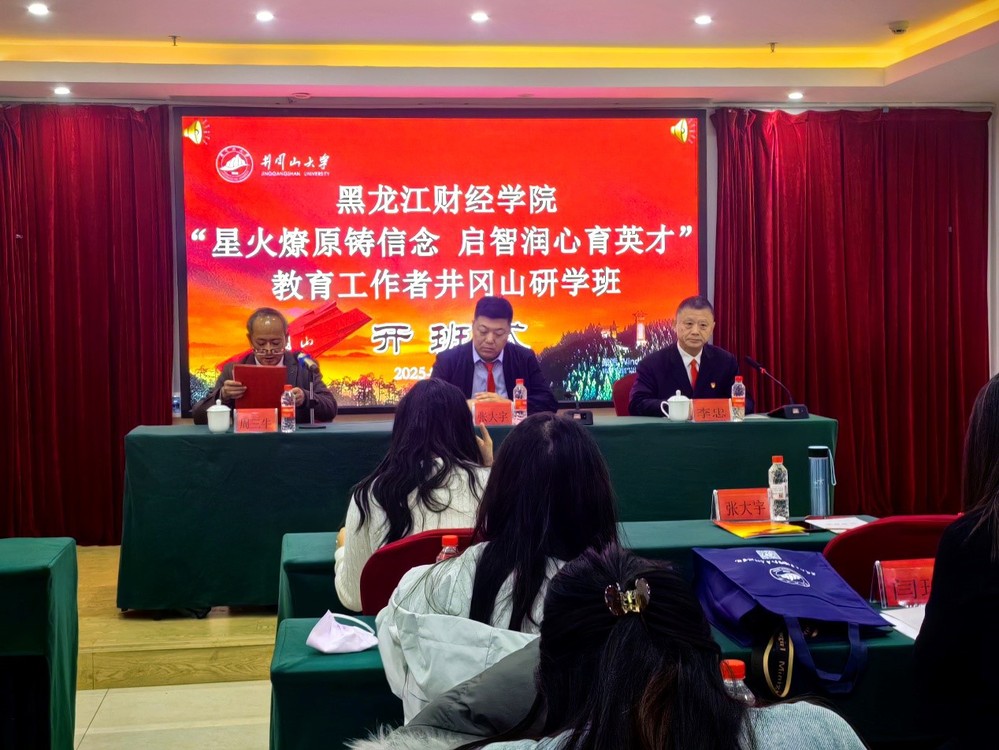 11月12日上午,研学班开班仪式庄严举行。井冈山大学井冈山研究中心原主任、马克思主义学院教授李忠同志致辞,他对黑龙江财经学院教师的到来表示热烈欢迎,并阐述了井冈山精神的深刻内涵与时代价值。张大宇同志在讲话中强调了此次研学的重要意义,希望全体学员珍惜机会、深入学习、锤炼党性。仪式上,李忠教授向培训班授旗,张大宇同志郑重接旗,标志着本次红色研学正式启航。